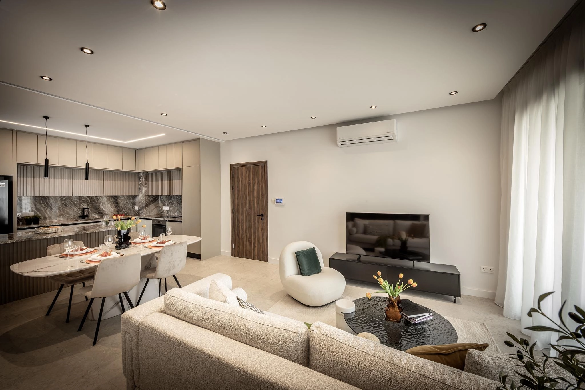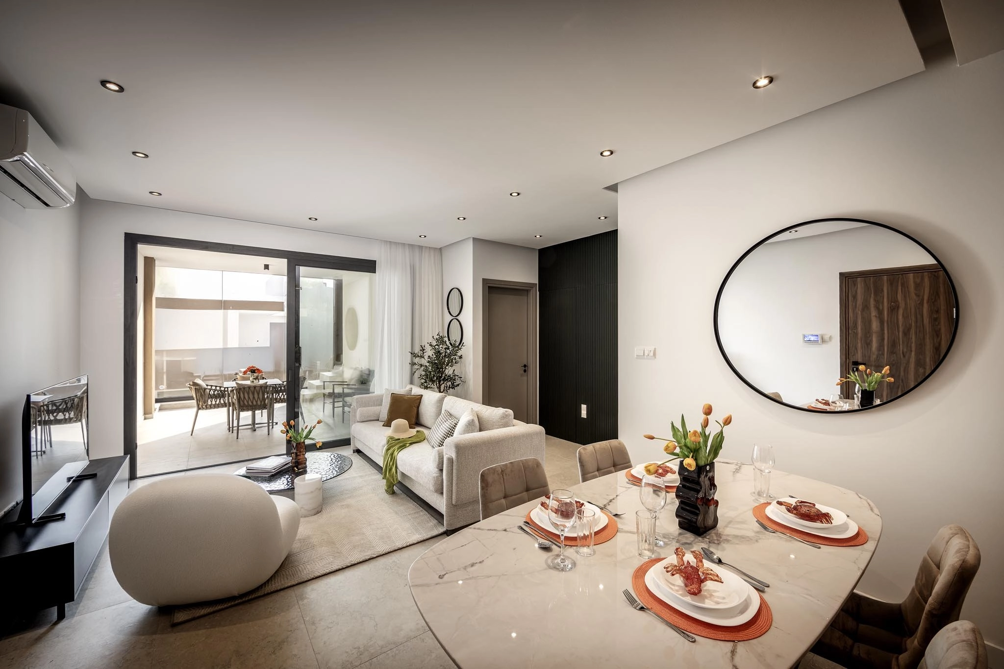 This is a gated luxury development in Livadia, minutes from Larnaca’s center. Designed for refined living, it offers elegant two and three-bedroom apartments amidst lush greenery. Residents enjoy premium amenities, including a 20m pool, Jacuzzi, gym, BBQ area, and yoga space. The project also features outdoor lounges, playgrounds, and a serene atmosphere, redefining modern comfort.