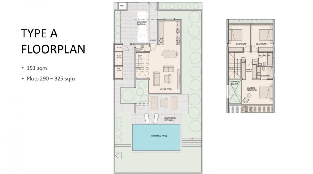 This outstanding three bedroom villa consists of an airy lighting open-plan living room,beautiful landscape garden ,covered parking,optional swimming pool and a covered parking.