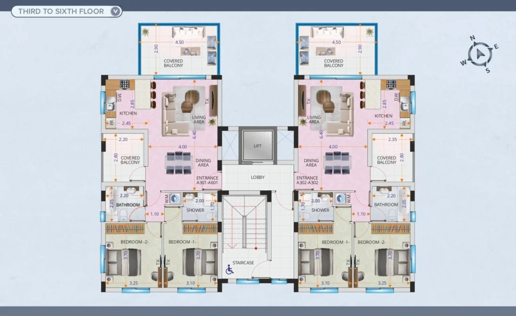 Featuring a thoughtful layout designed by leading professionals, the apartment combines functionality with elegance. It benefits from luxurious Italian ceramic finishes, unique glass balconies providing scenic vistas, and carefully planned interiors that ensure generous living space and privacy.