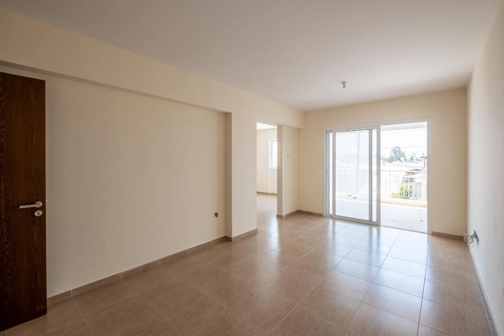 The property is an apartment door no. 104 in Livadia. It abuts Pavlou Liasidi street with a frontage of 20m. The apartment is located 250m from the roundabout connecting Kyriakou Matsi and Grigori Afxentiou Avenues and 800m from the village centre. The apartment is situated on the first floor. It has an internal area of 76sqm and 10sqm covered verandas. It consists of a living room kitchen two bedrooms bathroom toilet and a covered veranda. It also has the exclusive right of use of an uncovered parking space no. 8 on the ground floor. The apartment has a separate title deed with notes. Therefore the sale will be executed through a Sales and Purchase Agreement.