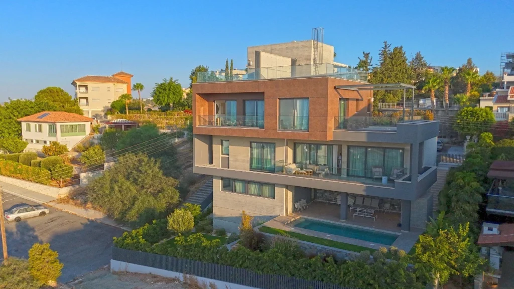 A modern 4-bedroom villa completed in 2023, located in the prestigious Panthea Hills of Limassol. Set on a generous 558 m² plot, the property offers 448 m² of covered areas, including 328 m² of internal living space, 120 m² of covered verandas, and 135 m² of uncovered verandas. Designed for comfort and functionality, the home features elegant interiors, four bathrooms, and a versatile basement that can be used as storage, office, gym, or playroom. The villa is equipped with Mitsubishi central VRV air conditioning, underfloor heating with a heat pump, a private swimming pool, landscaped gardens, and a rooftop with a BBQ area. An elevator connects all levels, from the basement to the rooftop, ensuring convenience and accessibility. Additional highlights include a 3-car automatic garage, Miele appliances, smart home technology, and a photovoltaic system. Situated in a quiet yet central neighborhood, the villa provides easy access to schools, business districts, and the city center, while offering breathtaking panoramic city and sea views. The main features of the project and the units: 4 bedrooms and 4 bathrooms Plot size 558 m², covered area 448 m² Internal living space 328 m² Covered verandas 120 m², uncovered verandas 135 m² Basement with multiple-use spaces Private swimming pool and landscaped gardens Roof garden with BBQ area and panoramic views Elevator connecting all levels 3-car automatic garage Miele appliances and smart home technology The project has an EPC certificate with “A” energy efficiency rating.