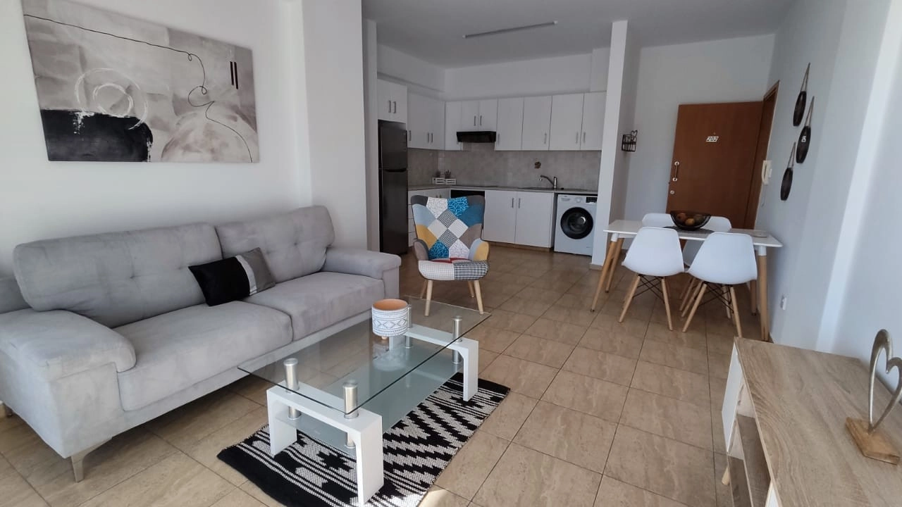 A fully furnished 2-bedroom apartment in Geroskipou, Paphos, offering a bright and functional layout. The property includes one bathroom, 64 m² of internal space, and a 7 m² covered veranda with partial sea views from the veranda and bedroom. A covered parking space is provided, and the title deed is available and clear. This home is ready to move in, making it suitable for couples, small families, or use as a holiday residence close to the sea. The main features of the project and the units: 2 bedrooms 1 bathroom Internal area 64 m² Covered veranda 7 m² Covered parking Fully furnished Title deed available Partial sea view The project has an EPC certificate with “B” energy efficiency rating.