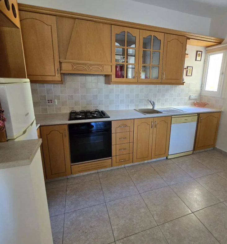 A fully furnished 2-bedroom apartment in Geroskipou, Paphos, offering a bright and functional layout. The property includes one bathroom, 64 m² of internal space, and a 7 m² covered veranda with partial sea views from the veranda and bedroom. A covered parking space is provided, and the title deed is available and clear. This home is ready to move in, making it suitable for couples, small families, or use as a holiday residence close to the sea. The main features of the project and the units: 2 bedrooms 1 bathroom Internal area 64 m² Covered veranda 7 m² Covered parking Fully furnished Title deed available Partial sea view The project has an EPC certificate with “B” energy efficiency rating.