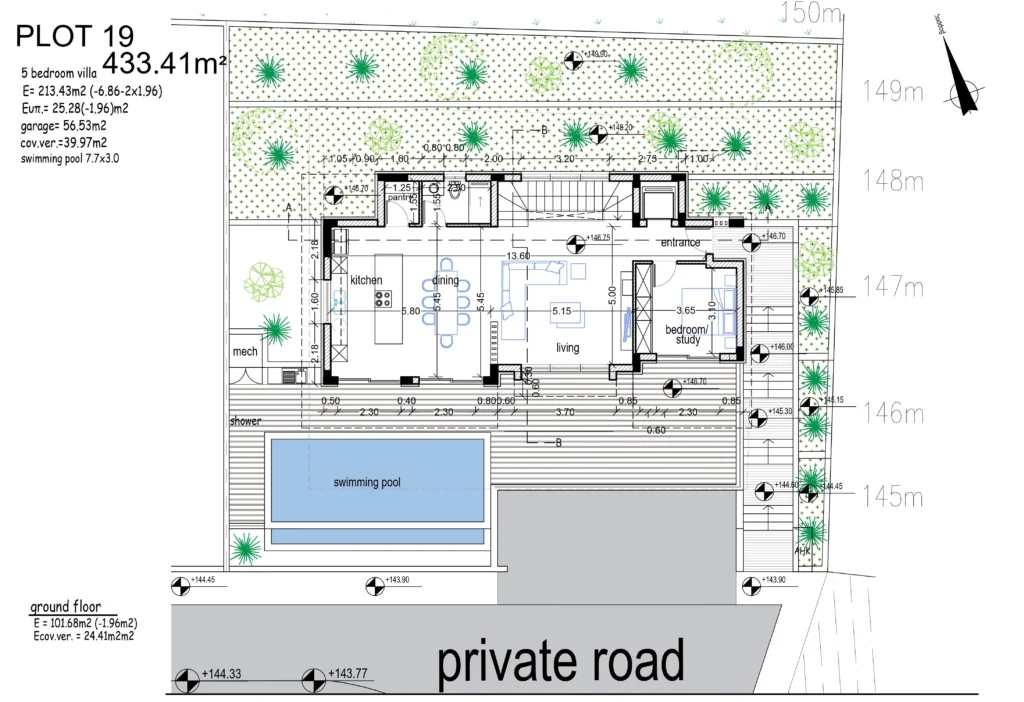 The villa features a generous open-plan living and dining area, complemented by large windows that fill the interiors with natural light. Bright, airy rooms open seamlessly to outdoor spaces, while the expansive plot provides ample room for a private pool, landscaped gardens, and al fresco living.