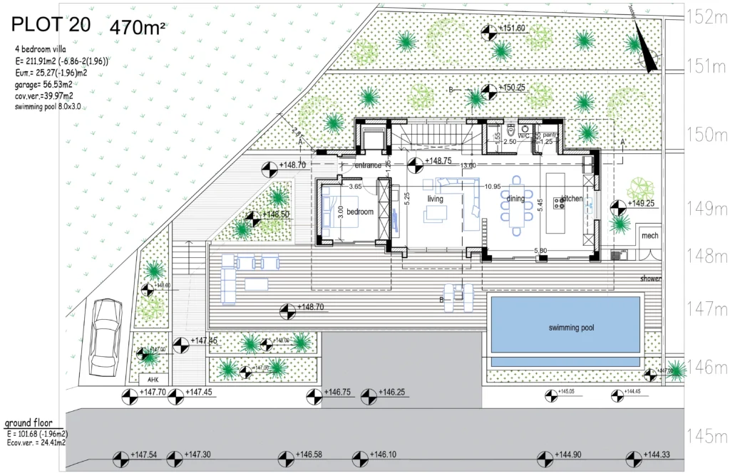 The villa features a generous open-plan living and dining area, complemented by large windows that fill the interiors with natural light. Bright, airy rooms open seamlessly to outdoor spaces, while the expansive plot provides ample room for a private pool, landscaped gardens, and al fresco living.