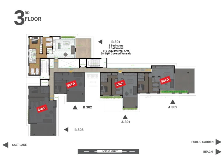 This elegant three-bedroom apartment offers the ultimate in modern coastal living, combining stylish design with first-class amenities. Featuring open-plan interiors, high-quality finishes, and floor-to-ceiling windows, the apartment is bright, spacious, and designed for comfort.