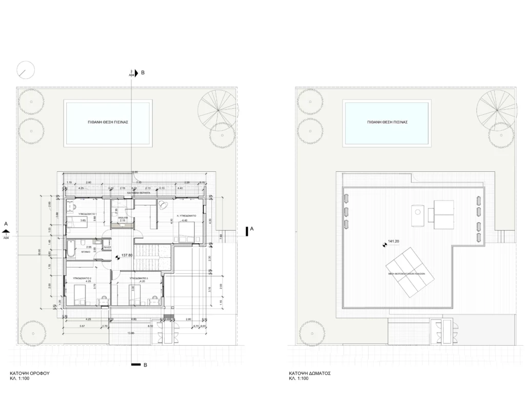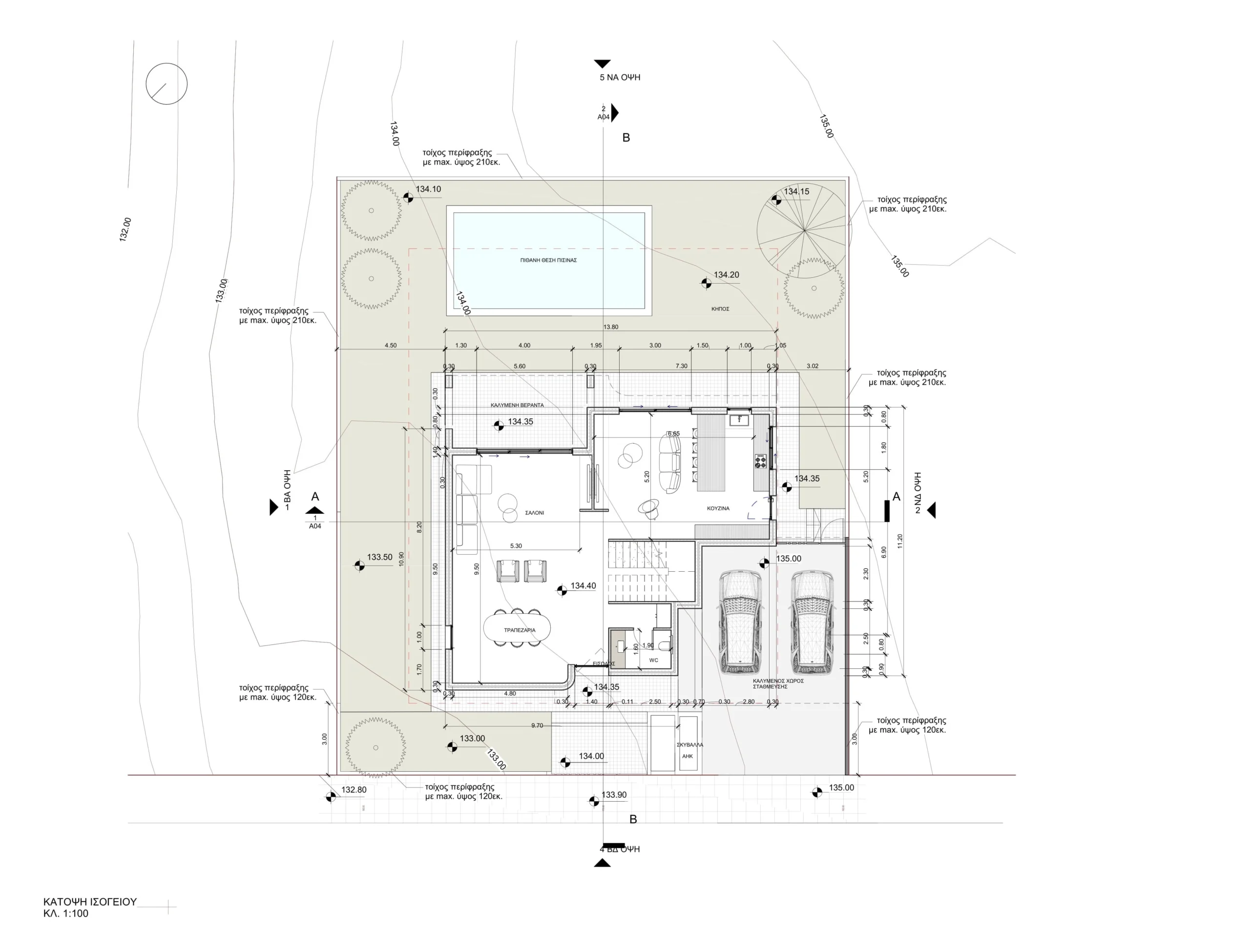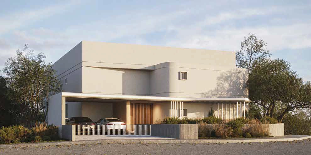 A contemporary-designed villa off-plan with a beautiful garden, a double-covered garage, large terraces, and an optional pool. On the ground floor, it features a spacious open-plan living room, dining room, a family sitting area, a modern kitchen, a laundry room, and an office room, all with a view of the garden. It also includes a guest WC. On the first floor, you’ll find four bedrooms: the master bedroom with a walk-in wardrobe and an en-suite bathroom, along with three additional bedrooms, each with a wardrobe area and an en-suite bathroom. The house also encompasses a basement apartment with one bedroom, an en-suite bathroom, a living room, a laundry room, and a storage room.