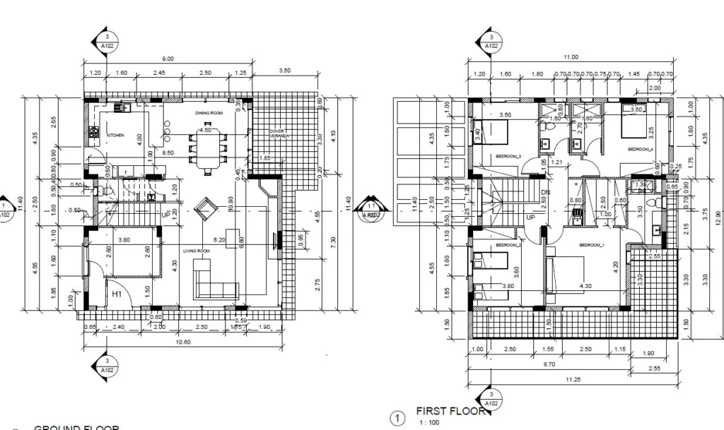 Stylish and spacious residence on a half-share of 506 sq.m. plot with 220 sq.m. covered area and a 25 sq.m. covered balcony. The home features an open-plan living and dining area, modern kitchen, office, and guest toilet on the ground floor.