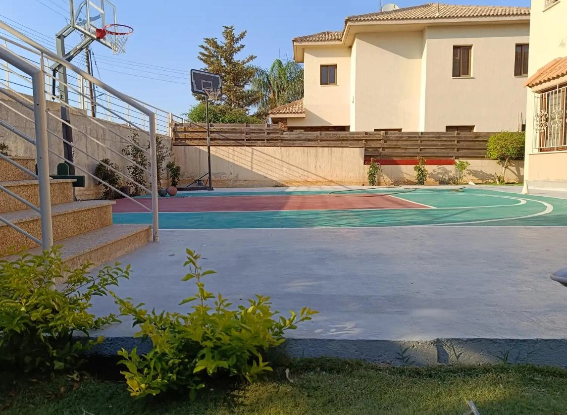 In the Moni area of Limassol, a spacious three-bedroom villa of 220 m² is available for rent on a 620 m² plot. The house features three bedrooms, two bathrooms, and three toilets. The villa is furnished and fully equipped with air conditioning, central heating, and a solar power system. The property includes a private swimming pool, a well-maintained garden, a covered garage, and an outdoor basketball court.