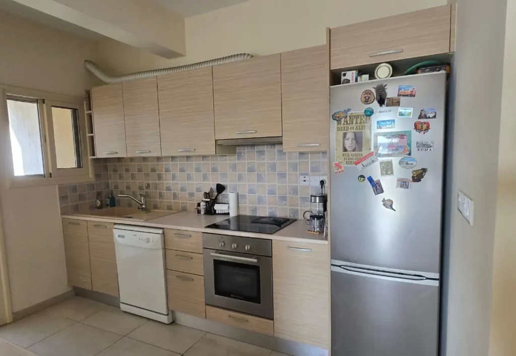 The house is located in the heart of Limassol, about a five-minute walk from the beach and a five-minute walk from the pizzeria on Limassol Avenue. The surrounding commercial area has a large supermarket, and hotels and restaurants are also very close. The house has two bedrooms, two bathrooms, a floor area of 82 square meters, and a communal swimming pool downstairs.
