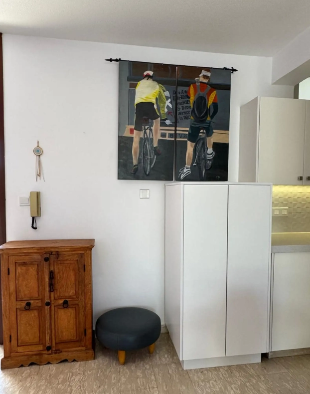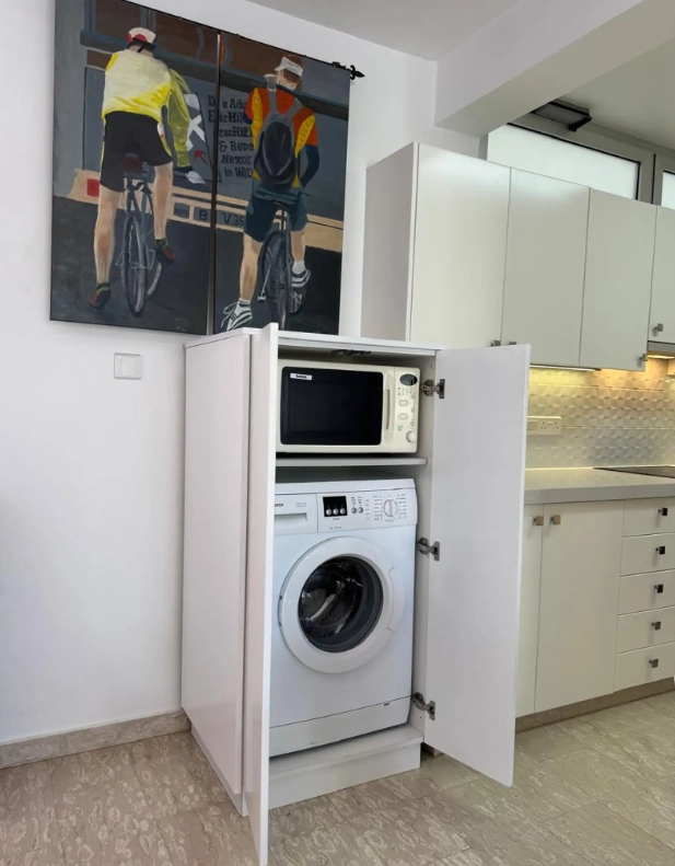 The apartment is on the first floor of a gated complex with a common swimming pool (including a separate kids’ pool) and a beautiful garden. One can use sunbeds and umbrellas free of charge.