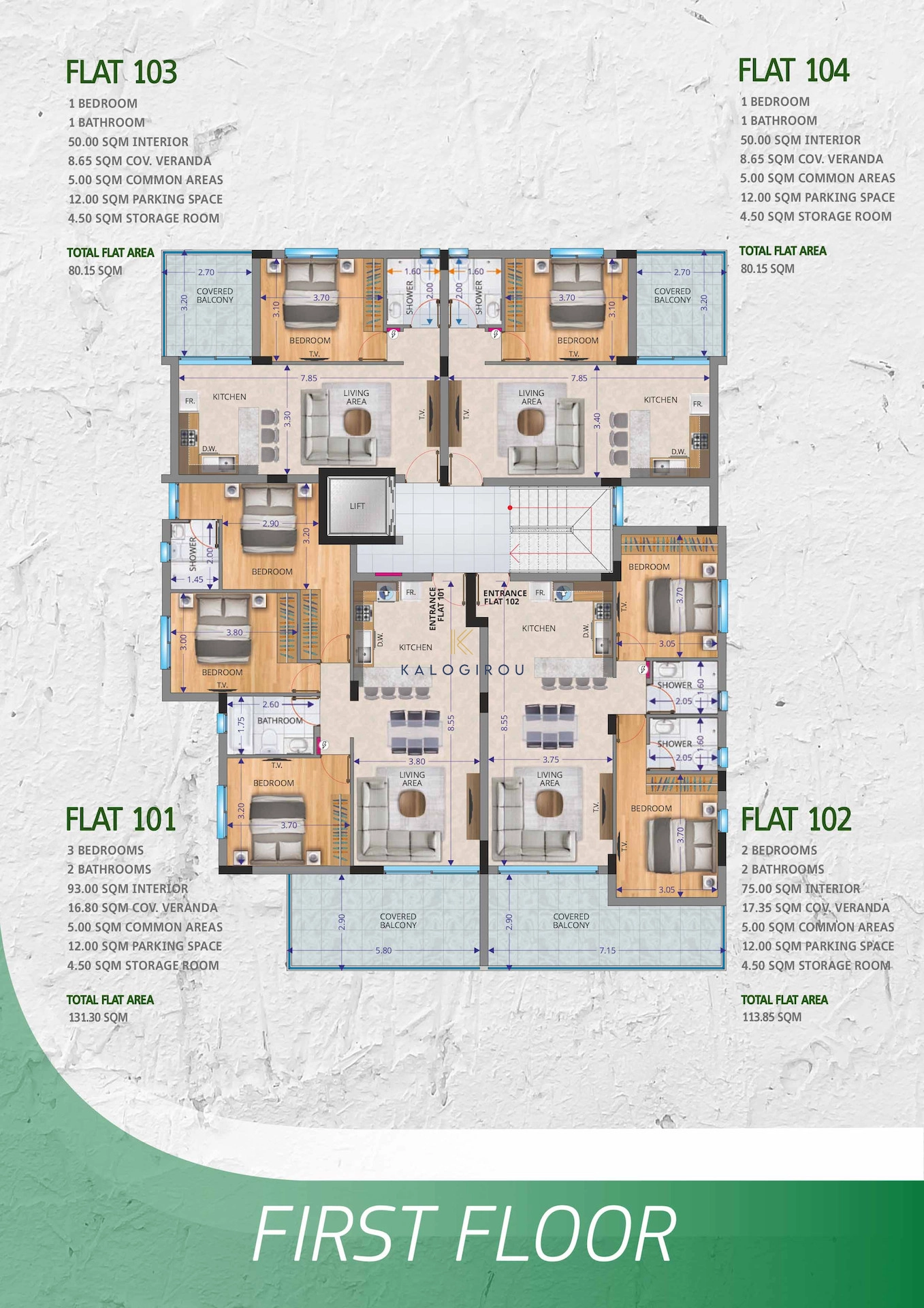 First floor apartment for sale in Livadia area. It consists of an open plan kitchen, living, dining area, a main bathroom, three bedrooms, master bedroom is en suite and covered veranda. The apartment has allocated covered parking space and storage on the ground floor.