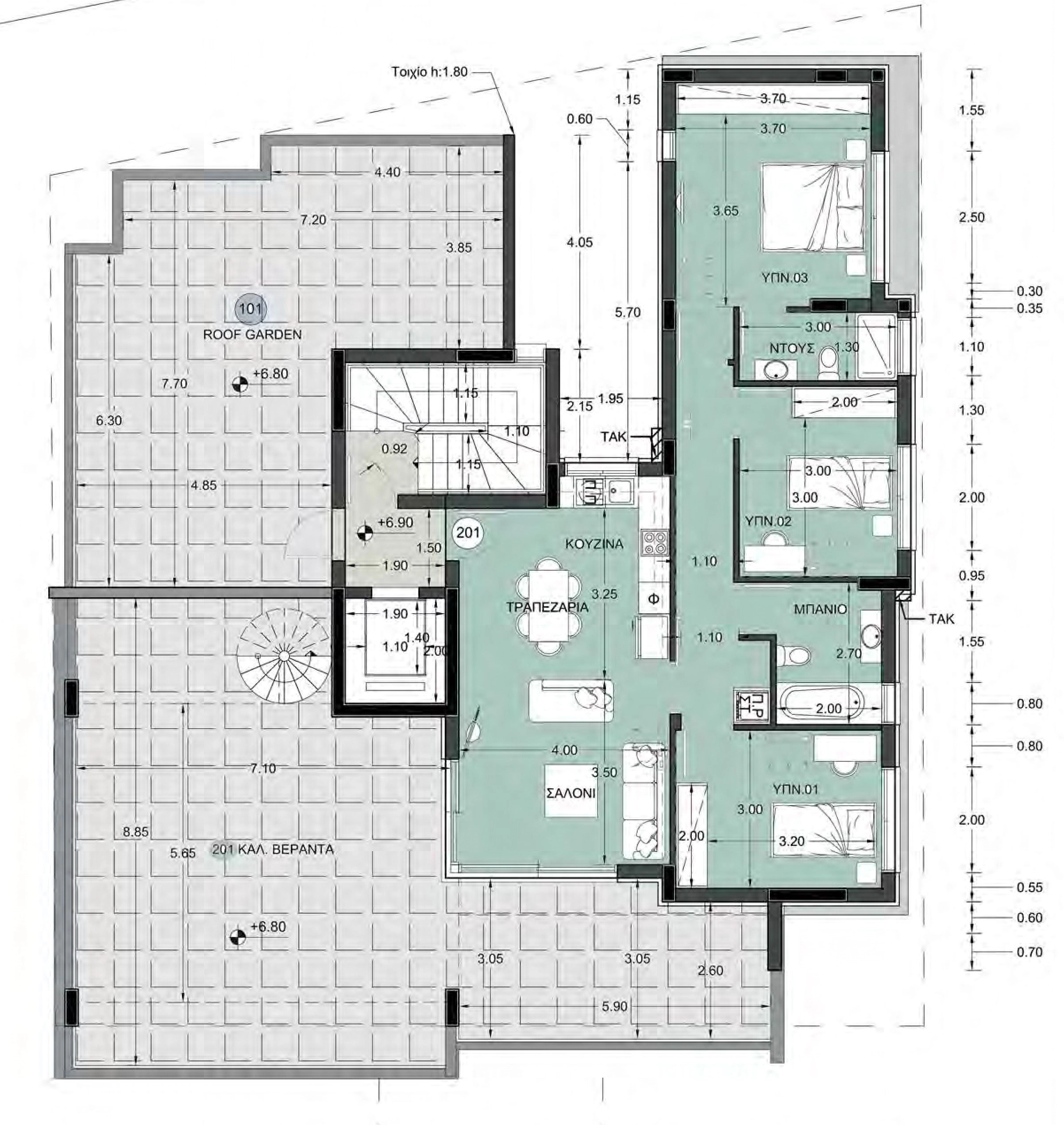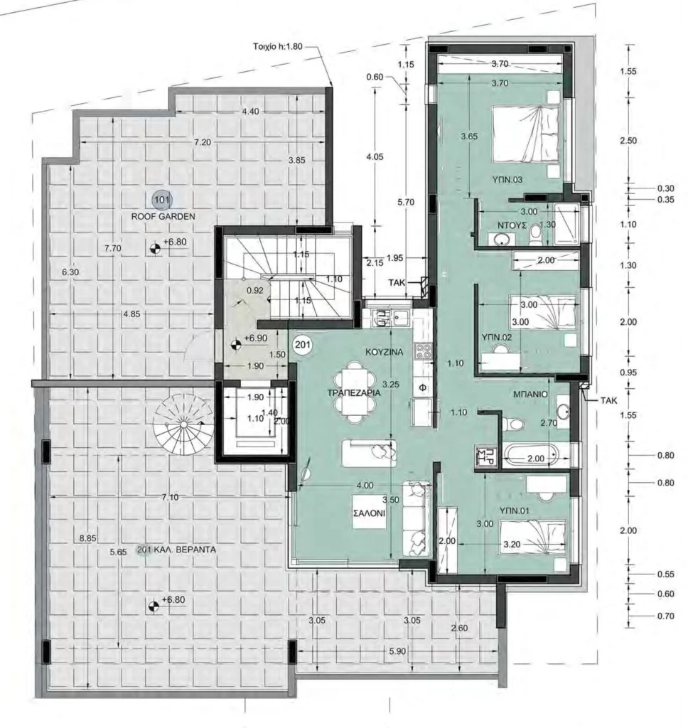 The apartment features three bedrooms and ample storage, along with a main bathroom and an en-suite bathroom in the master bedroom. A storage room and covered parking space on the ground floor add convenience and practicality. Residents also enjoy private roof access, perfect for relaxation, entertaining, or enjoying panoramic views.