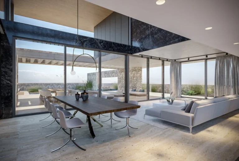 All villas are designed with a modern, open-plan concept, with primary spaces oriented towards the sea, they are fully detached and are comprised of four levels – lower level, ground level, first floor, roof garden. Large expanses of glass are optimally placed to promote the breath-taking views around these luxury homes – oversized 2.8-meter-tall glass doors slide away into the walls, extending the ground level main living spaces out onto the veranda and pool deck. Each plot includes a private plunge pool.