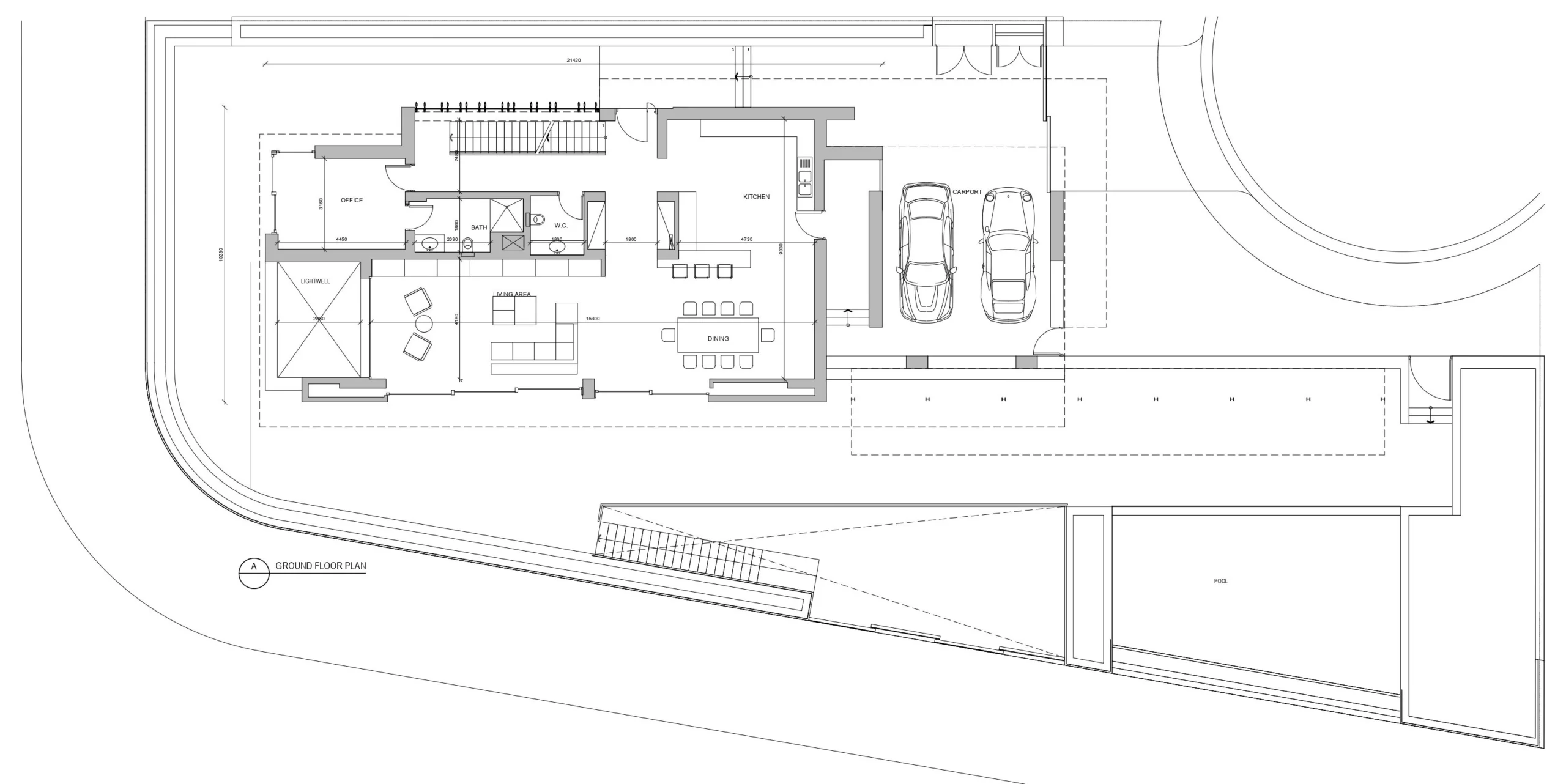 The villas’ architecture is a combination of contemporary and traditional expression, combining local stone around the base with sleek plaster volumes cantilevered above.