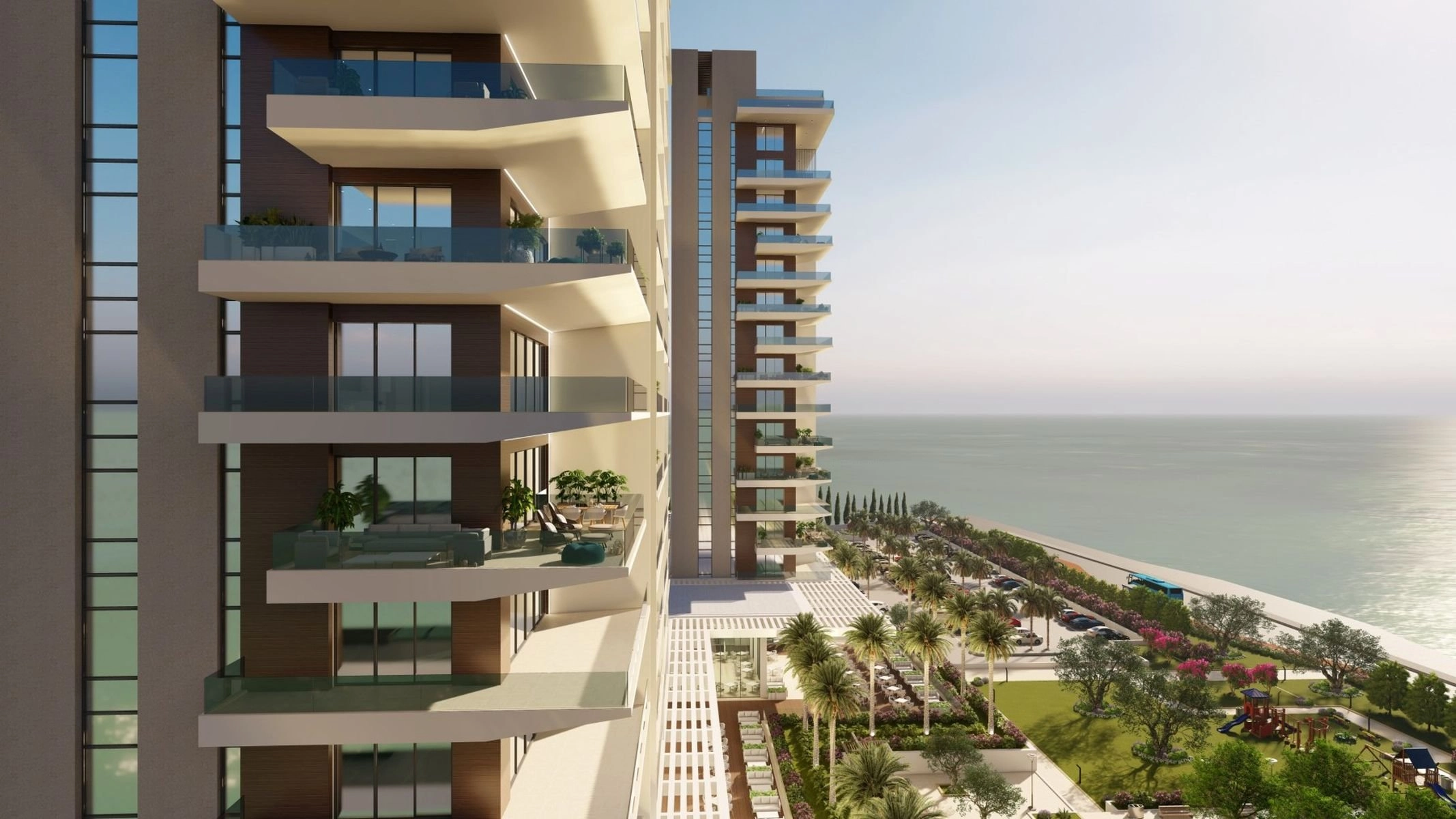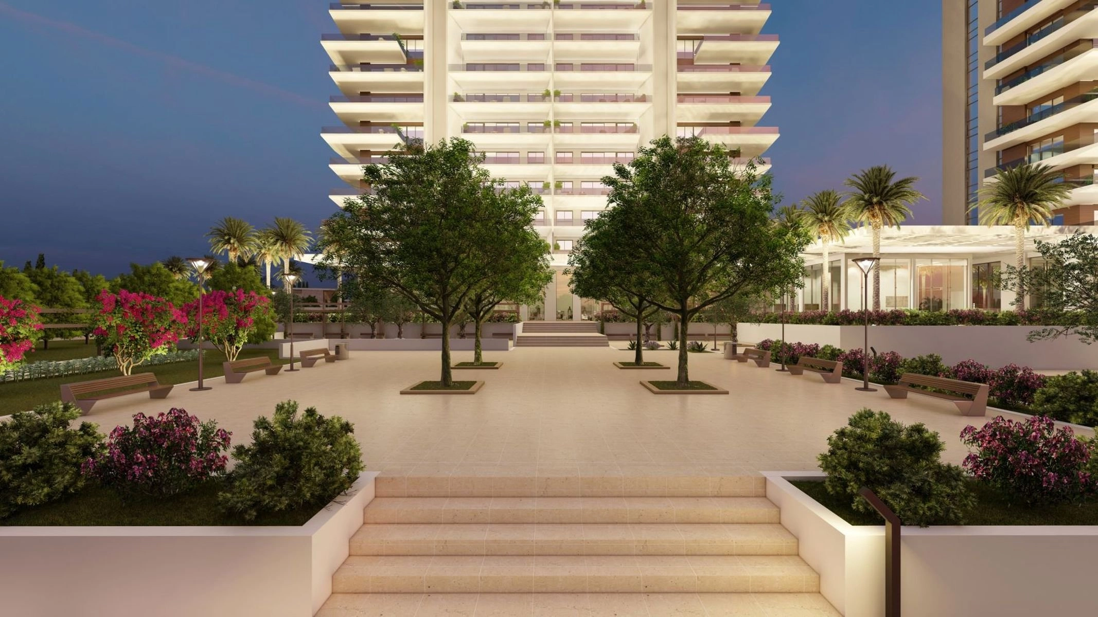 A truly ambitious impressive and unique residential resort in one of the most privileged areas of Pafos is comprised of two high-rise towers of 15 and 16 floors with 2,3 and 4 bedroom luxury apartments, duplexes and penthouses and 20 deluxe villas. Large verandas from the ground to the top are designed to observe stunning sunrises and breath taking views of the sea, the harbour, the ancient castle and the whole Pafos city.