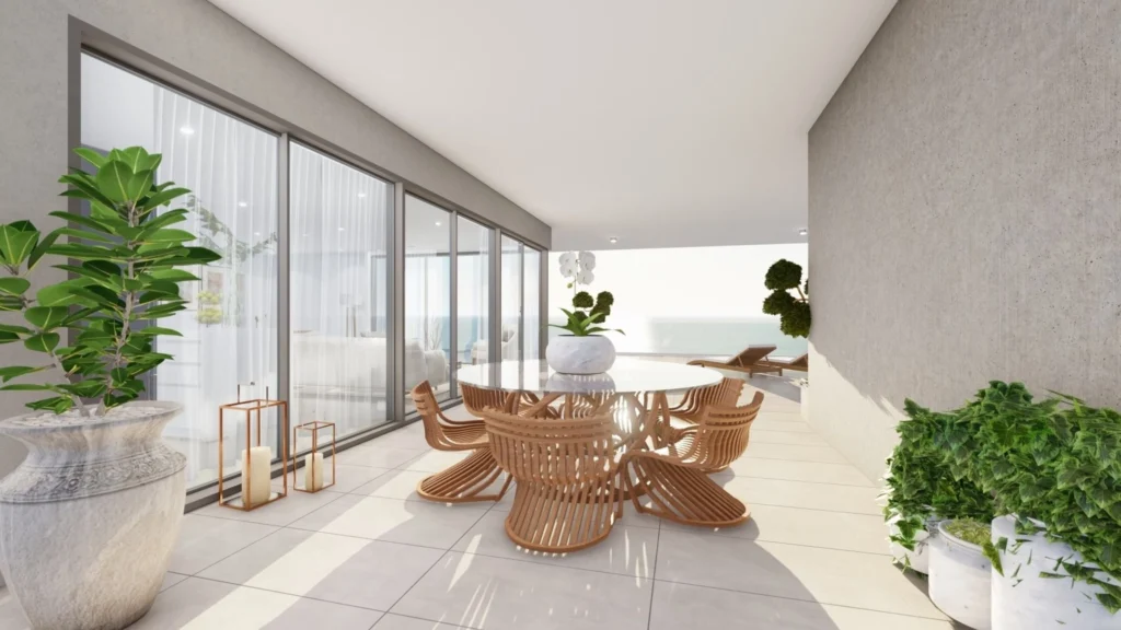 A truly ambitious impressive and unique residential resort in one of the most privileged areas of Pafos is comprised of two high-rise towers of 15 and 16 floors with 2,3 and 4 bedroom luxury apartments, duplexes and penthouses and 20 deluxe villas. Large verandas from the ground to the top are designed to observe stunning sunrises and breath taking views of the sea, the harbour, the ancient castle and the whole Pafos city.