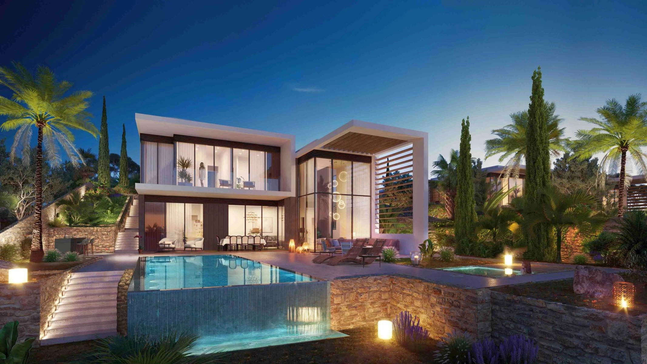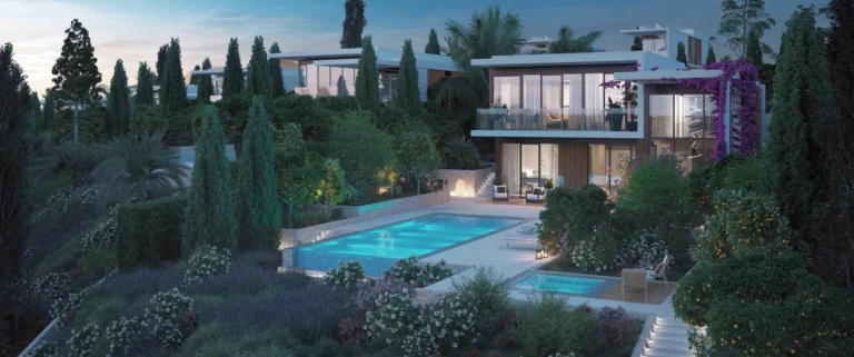 The general arrangement of the built-up area features two lines of land plots along the valley, making good use of the height difference, recessing the villas located along the valley into the mountain in order to preserve the picturesque panoramic views from the houses situated on the western line.