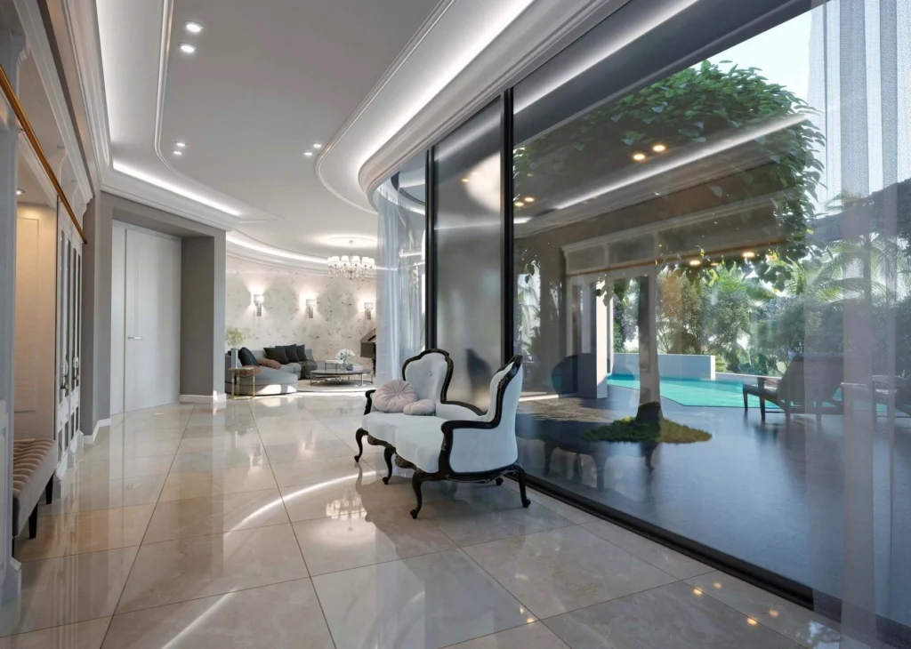 The outdoor amenities include infinity swimming pool, landscaped gardens and an excellent recreation area on the roof garden. The advanced engineering technologies, such as ‘smart home’ systems of new generation, warm floors (water heating technologies) throughout the house, VRV-system of central air-conditioning and many more make life in this house extremely comfortable.