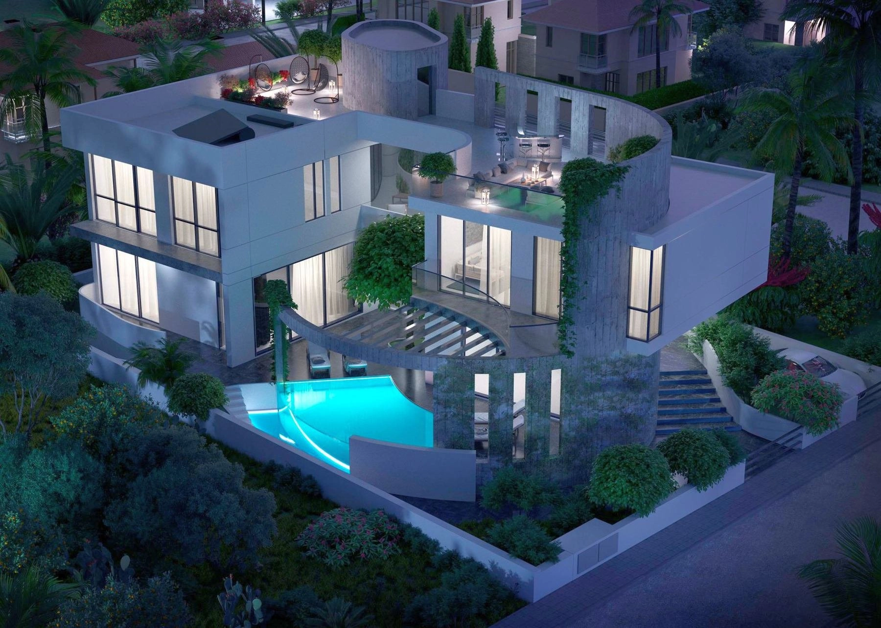The villa is laid out on 4 floors, where the basement level has an underground parking for 3 cars, a studio, laundry room and other technical rooms. The ground floor host the kitchen, two living areas, a dining room, an office and a guest toilet while the 4 bedrooms with ensuite bathrooms are tucked away on the first floor with the lounge-bar area above them on the top level promises relaxing evenings under the stars.