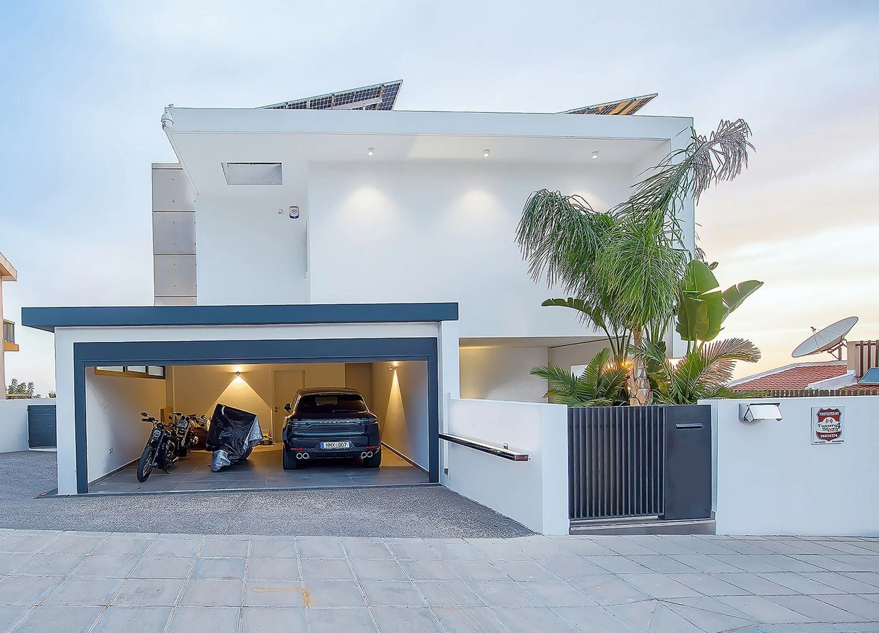 This private residence overlooks the Pafos coastline and majestic Mediterranean as far as the eye can reach. The impressive technical specifications of this residence – from full smart house to carefully designed ambient lighting ensure responsible energy consumption without compromising the homeowners’ comfort. Features like underfloor heating, impressive fireplace, South facing verandas with expansive shading systems, gym and a separate studio-style space make the residence perfect for all year living. The stylish gardens are meticulously maintained and create privacy.