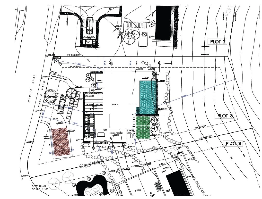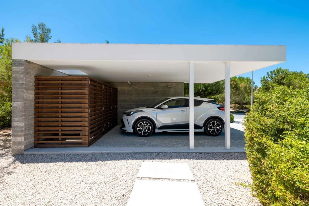 The 1400 sq m plot greets you by a natural garden with shrubs, herbs and spices and a signature 100 year old olive tree.