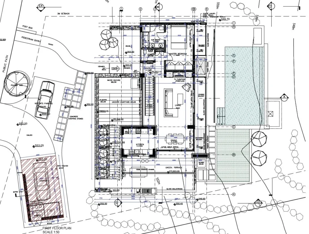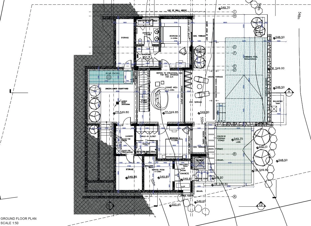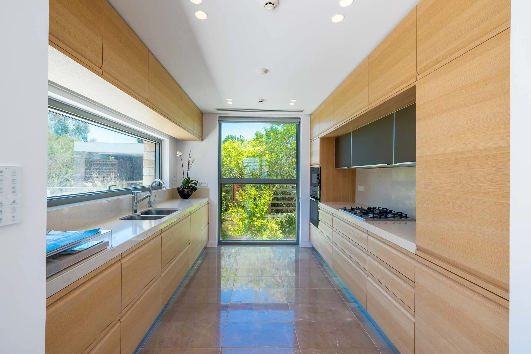 The lower level landing lounge is a perfect setting for a recreation room or an office space, and has exit to the pool area and the inviting internal courtyard. There is a stylish water feature in the courtyard and maids room and utility room.