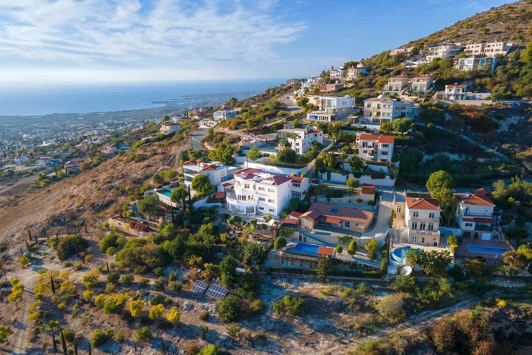 Boasting five bedrooms, a gym and a lift which descends to the lower floor where there is an additional separate kitchen. The lower floor can be used a completely separate living space, ideal for having guests stay over. Taking full advantage of the Mediterranean climate and lifestyle, the property benefits from a covered BBQ, a traditional clay oven often used for kleftiko as well as a beautiful garden with a number of fruit trees, an irrigation system and finally a photo-voltaic solar panel system