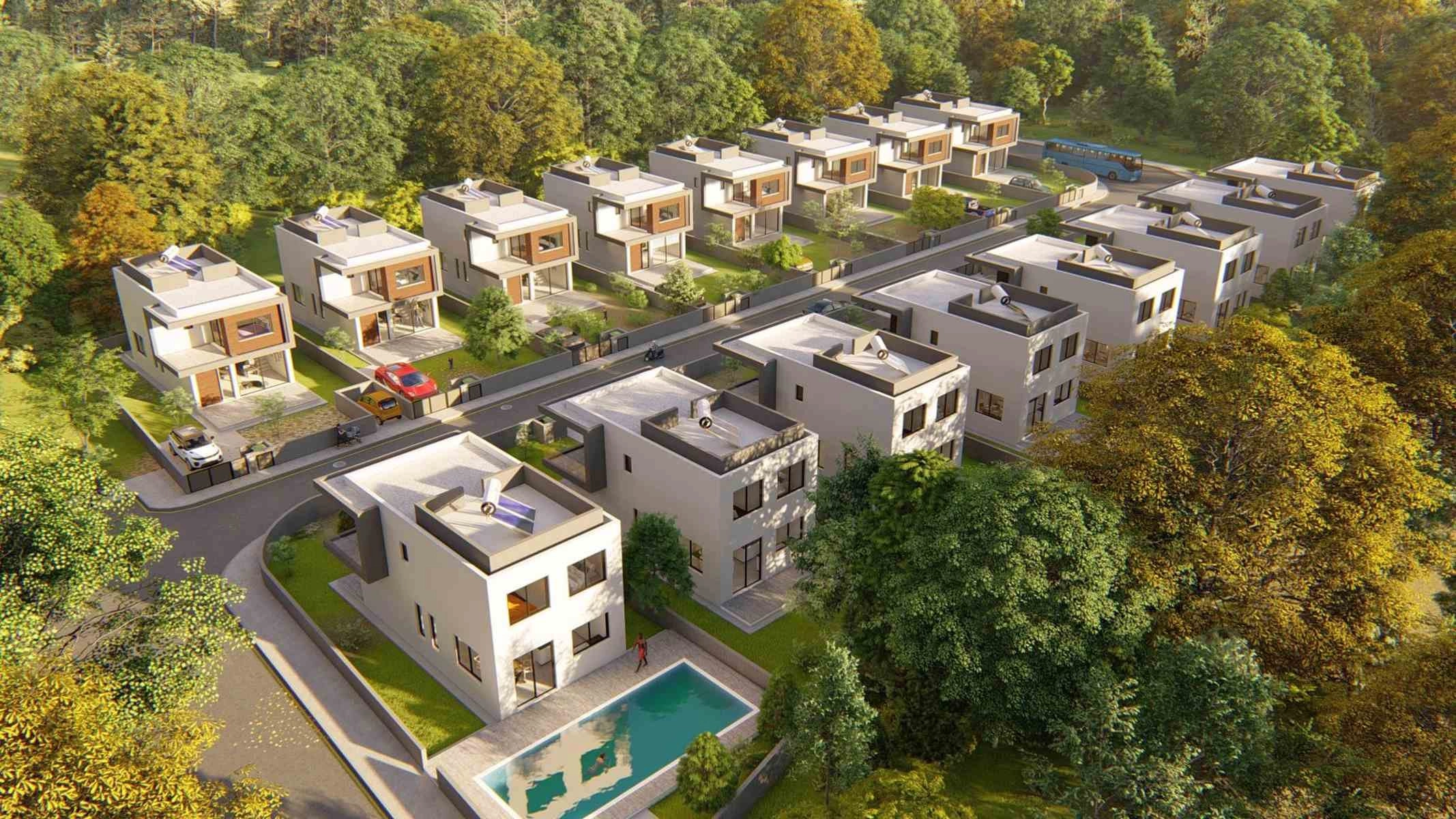 This project integrates chic, modern architecture with sleek lines and trendy materials. The stunning villas offer a choice of different designs and sizes on large plots, so there is something for every taste and budget. All villas have spacious living areas, bedrooms, kitchens and bathrooms in a modern style and an added advantage of a spacious roof terrace equipped with a roof bar to enjoy the Mediterranean outdoor living and the stunning surrounding views.