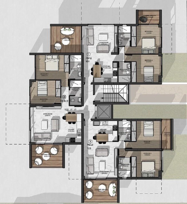 This brand new recently completed residential development boasts one of the most advantageous locations in Pafos – equally close to the sea, the shopping mall and the city with all the urban amenities, including schools, hospitals, banks, restaurants etc. Basically, you are within a short walk from everything.