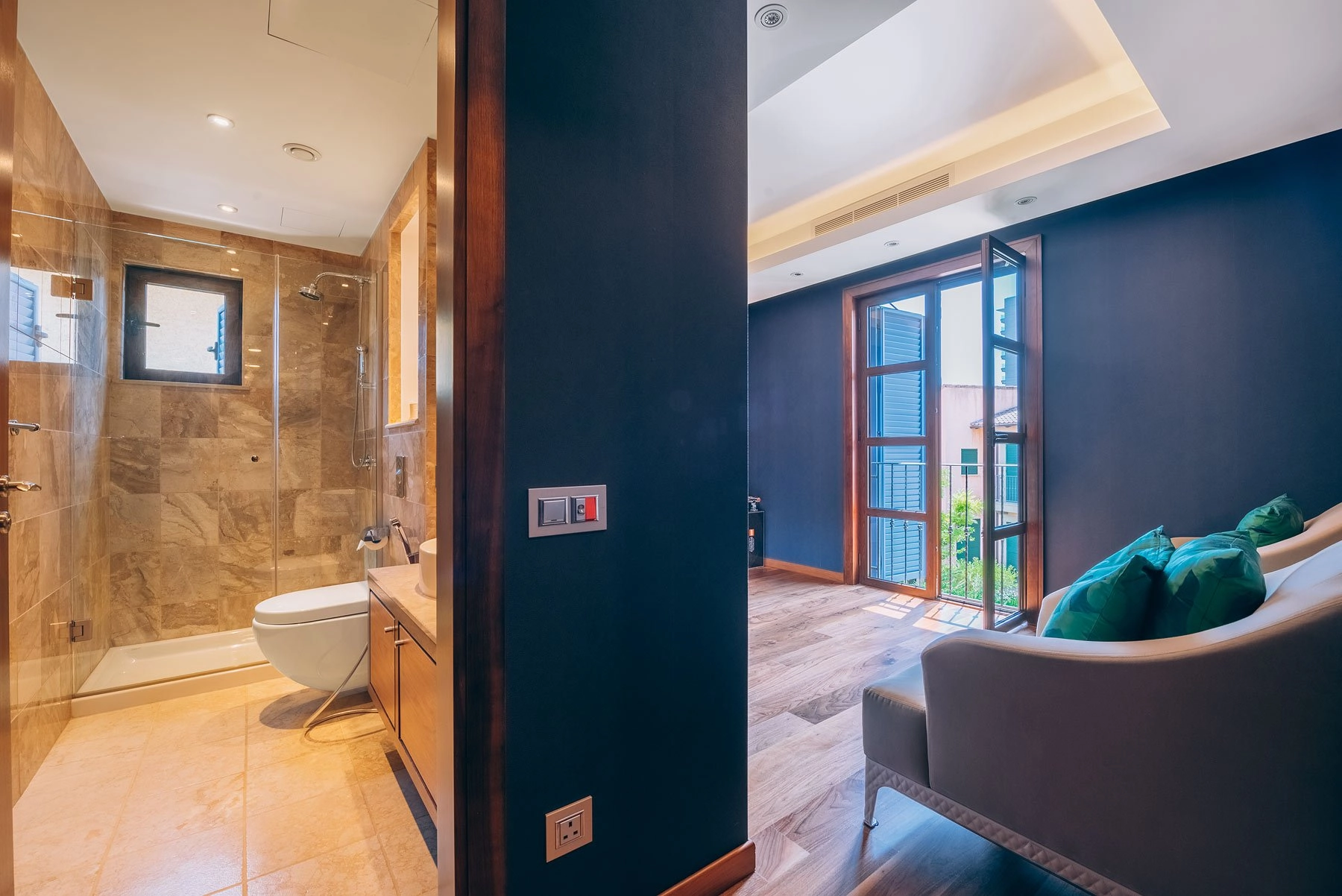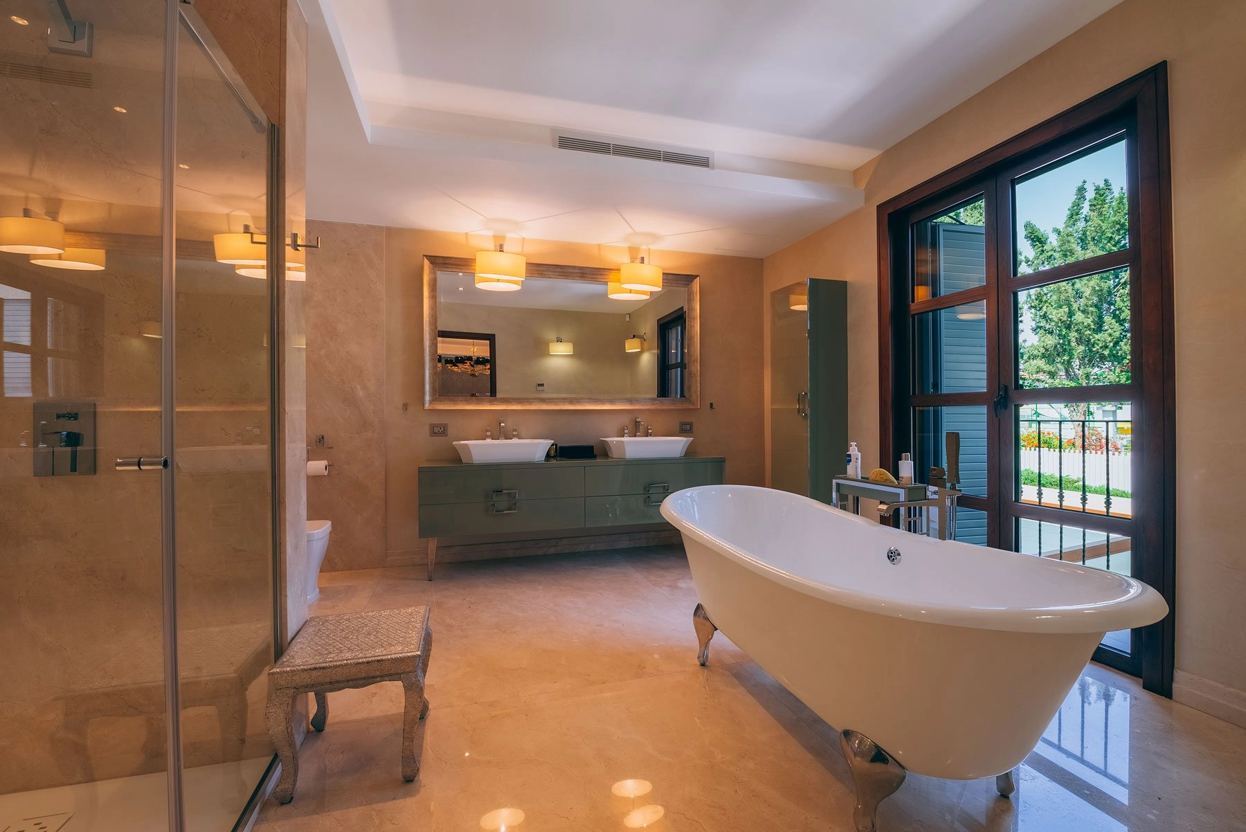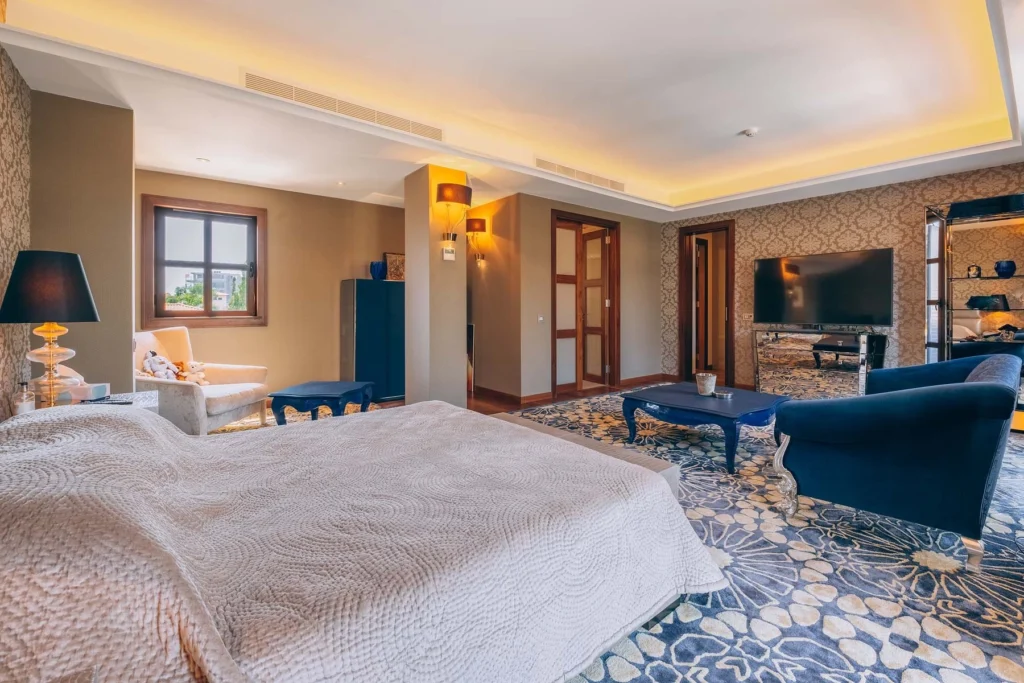 The residence was built in 2010, and with an area of almost 800m2 and 3 floors located on a plot of 800m2, the residence consists of the Ground floor with spacious living rooms, dining rooms, kitchen, hamam, maid’s room, massage room and other supporting areas.