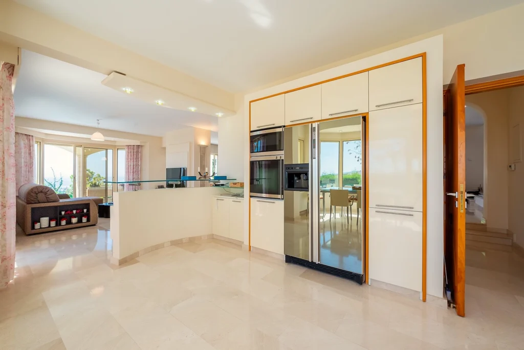 Located on a beautiful hillside, the villa offers a 270-degree view of the sea, mountains, and city. Large floor-to-ceiling windows provide a constant view of the Limassol coastline and expand onto spacious balconies where guests may relax and enjoy the cooling sea breeze.