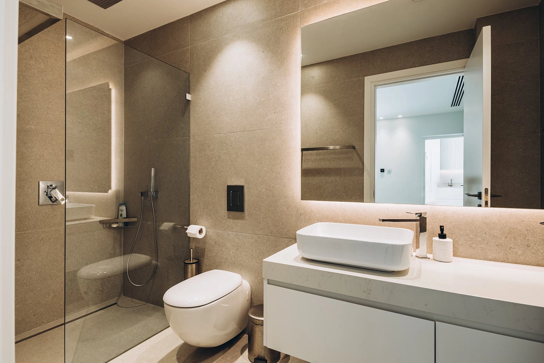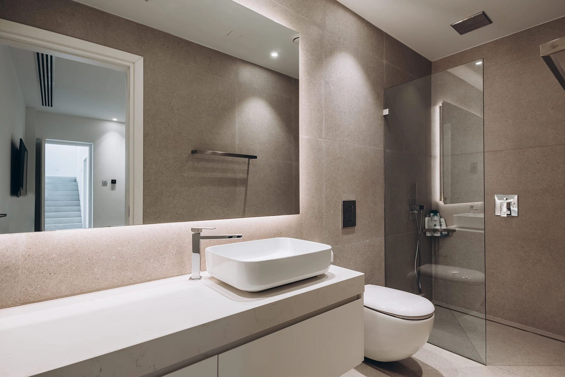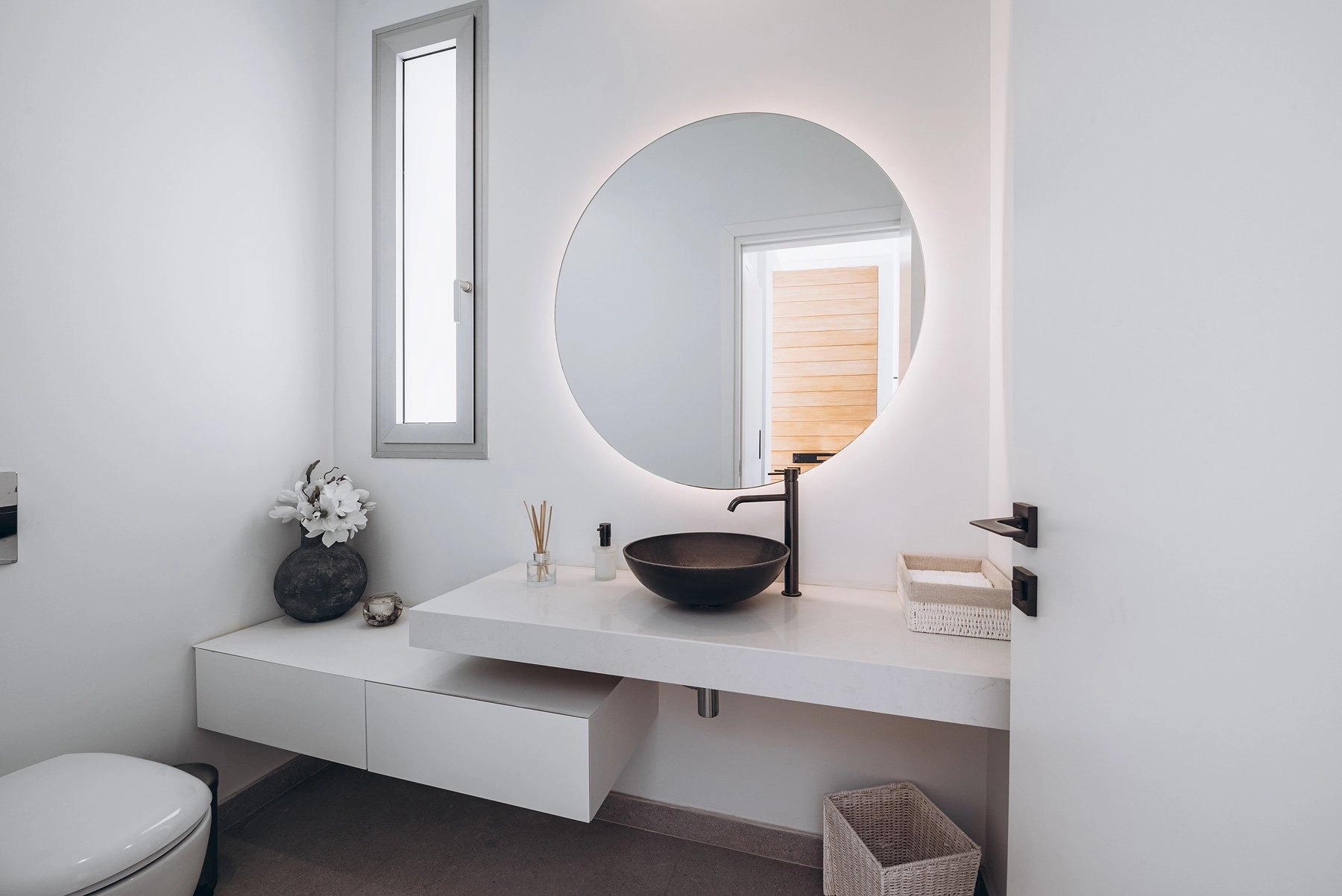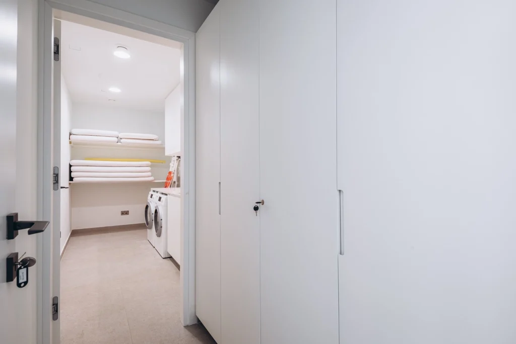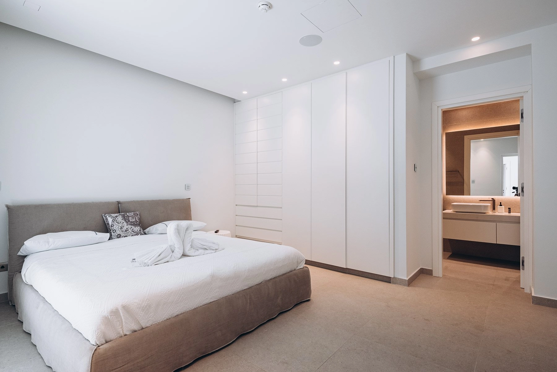 It is located in a boutique villa complex on the first line with panoramic sea views. On the lower level there are 3 en-suite bedrooms, the service/laundry room and the plant room. On the ground floor you will find an open plan kitchen, dining and living area with panoramic sliding doors leading onto the pool deck and the garden.