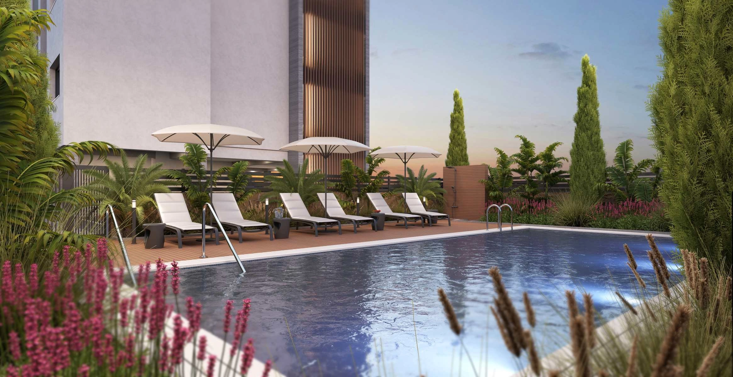 The project represents a limited selection of 2/3 bedroom apartments and luxury penthouses with spacious terraces. The premium-class apartments offer a unique combination of living close to the best beaches and entertainment venues with an active business environment. All of them feature unsurpassed quality of specifications and finishes, spacious living areas, and large balconies for Mediterranean outdoor living.