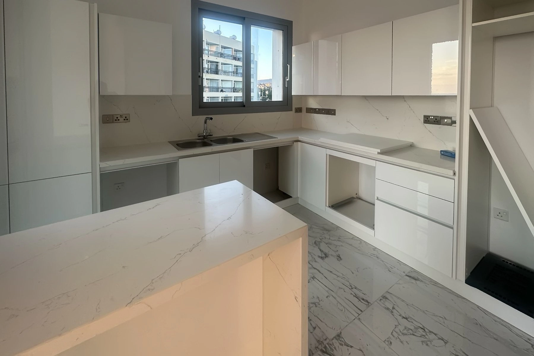 Living by the sea in one of the most prestigious and aesthetically pleasing parts of Limassol coast is exactly what you get with this apartment. Located 50 metres from a sandy beach and within a walking distance to various shops, restaurants, cafes and hotels, this 2 bedroom 3 bathroom apartment is very well designed: there is an entrance hall with a wardrobe space, leading you to the living area with sea views and a spacious veranda. The kitchen is separately zoned and therefore hidden away from the immediate glance of guests, although organically connected with the main living space. Two bedrooms compete for the status of the master bedroom as both of them have bathrooms and plenty of wardrobe space. Comfortably facing West, the bedrooms are hidden from direct sunlight. The apartment is sold unfurnished but with built-in wardrobes and sanitary ware.