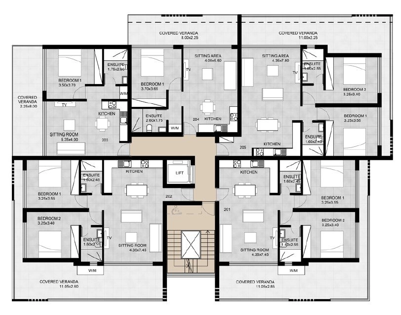 Sleek contemporary asymmetrical architectural lines, exceptional quality of materials and construction, and smart practical layouts create a gem of modern residential developments. Each of the one and two bedroom apartments offers spacious open plan living areas, modern kitchens, cozy bedrooms and large balconies with glass balustrades. The top level hosts office spaces and roof gardens with stunning views.