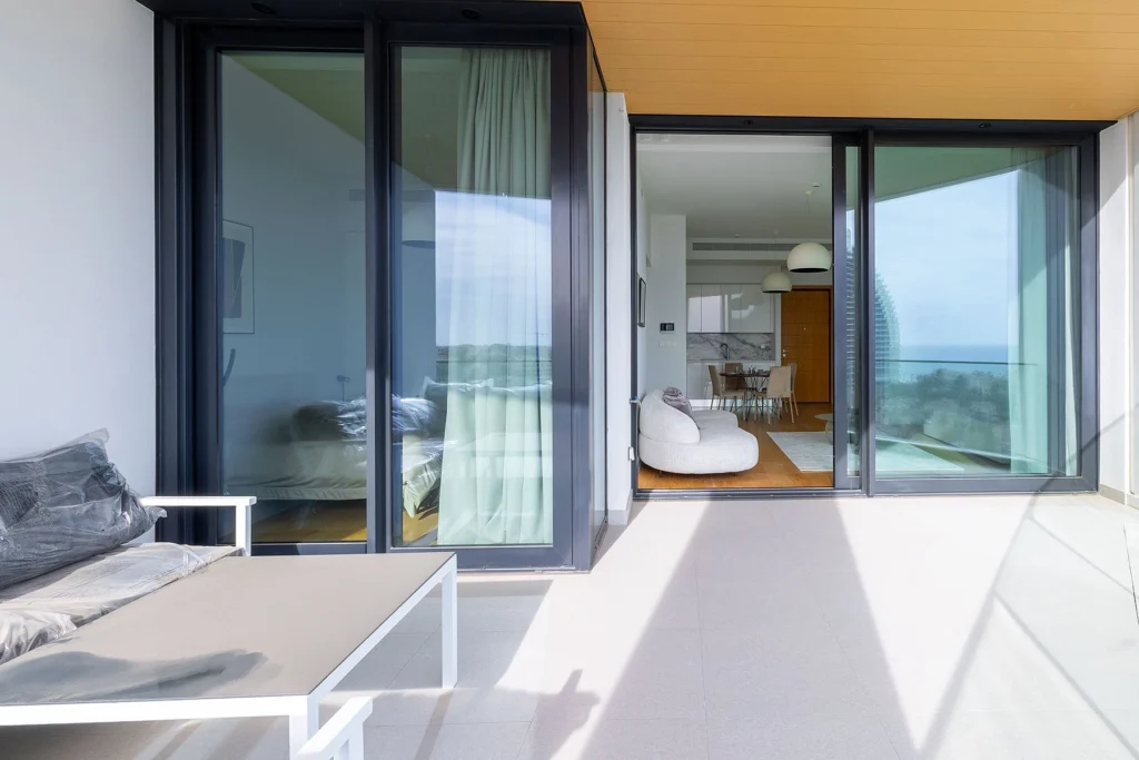 The 1 bedroom brand new apartment is spacious, very well laid out, and grants amazing sea views beyond the cityscape. It has high ceilings (3.15 meters), VRV air-conditioning, underfloor heating, and the highest level of interior finishes and decor.