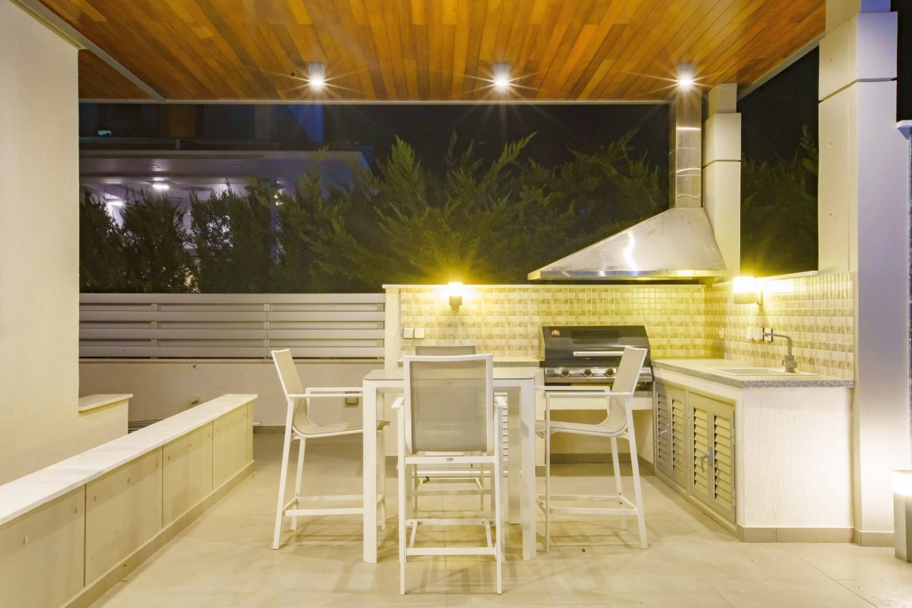Inside you will find the most elegant and modern décor, furniture, and appliances. The property consists of three levels, with a spacious open plan living and dining room, kitchen, and a guest powder room on the ground floor, three bedrooms on the first floor, including the ensuite master, and extra living areas in the basement. The roof provides additional outdoor recreational space by offering a magnificent roof terrace to enjoy a refreshing drink under the southern stars.