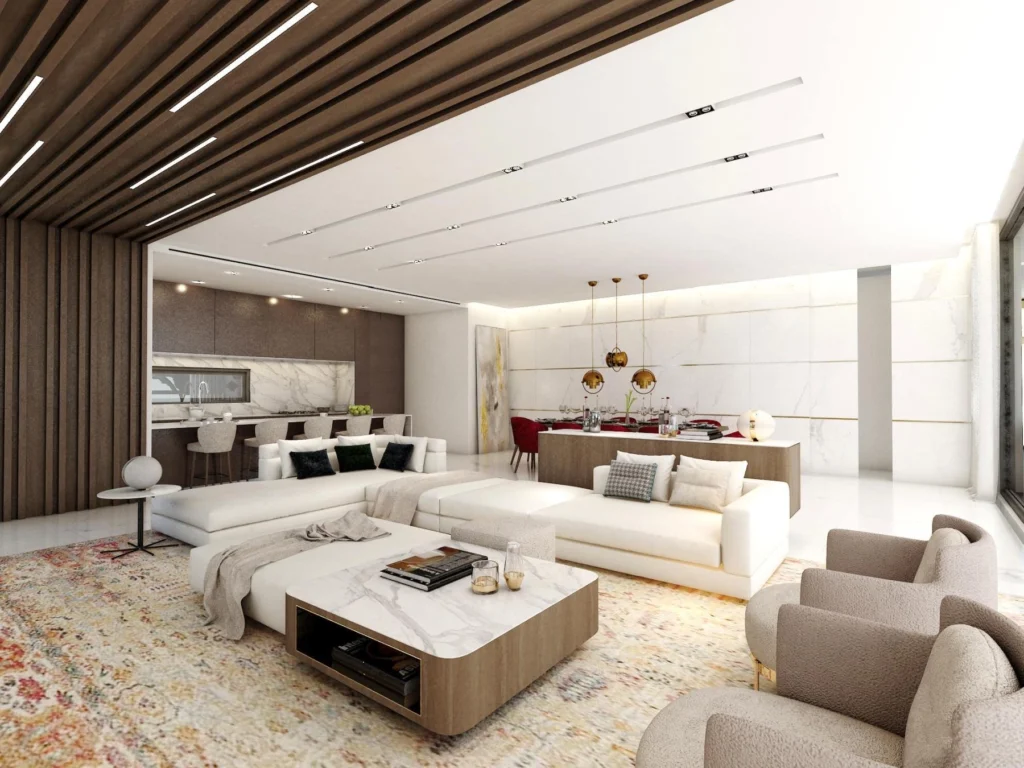 The complex stands out with its extravagant futuristic architectural design, excellent interior finishes, high-quality materials, and breathtaking panoramic views of the sea and Larnaca Salt Lake.