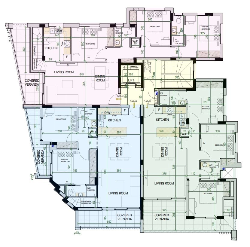 The development is carefully designed to ensure maximum comfort and convenience for its residents. All apartments have exceptional layouts, ideal for practically any of your interior design or furniture arrangement ideas. There is an open plan kitchen-dining room, living room, separate bedrooms, 2 bathrooms, and covered verandas. A particular advantage of the development is the selection of spacious 2- and 3-bedroom apartments with modern and functional architecture with the option of modifications for additional bedrooms.