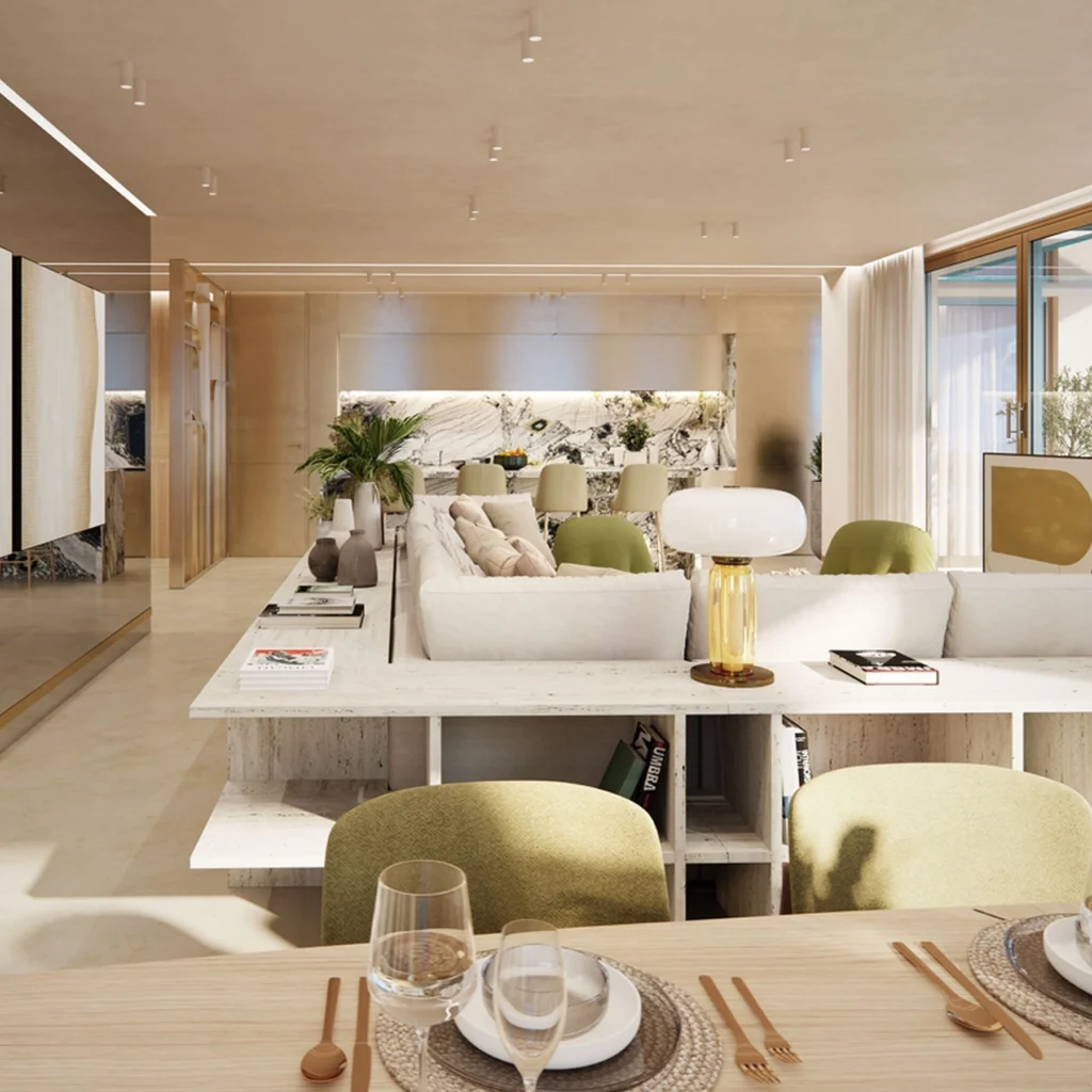 The open-plan design of one, two, and three-bedroom apartments creates an ideal entertaining space with sunlit terraces that offer mesmerizing sea views. A variety of apartment layouts with individual design tweaks cater to residents’ different lifestyles and needs.