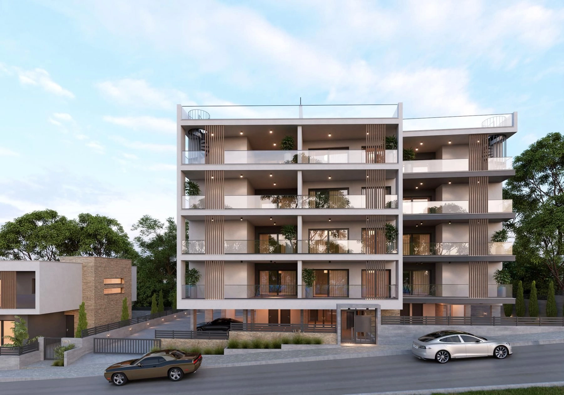 Here the striking cubist architecture meets style and elegance in harmonious coexistence. The residences have been thoughtfully designed to provide residents with intimate and cozy living spaces that prioritize privacy while still embracing the openness of the surrounding environment.