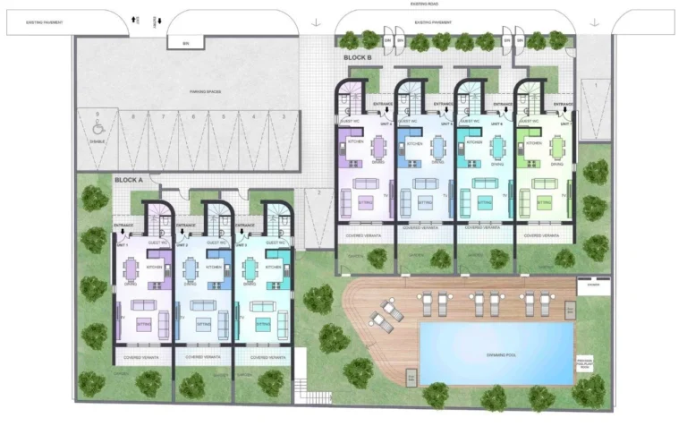 Nestled on a peaceful street, this charming complex occupies a coveted location in the heart of Germasoyia, a highly sought-after residential quarter of Limassol. Within a few minutes’ leisurely stroll, residents can reach the picturesque seafront and immerse themselves in the natural beauty of the Dasoudi Eucalyptus Park. A delightful array of restaurants, shops, and essential infrastructure surrounds the area, ensuring that residents can enjoy a modern and convenient lifestyle in this rapidly developing city.