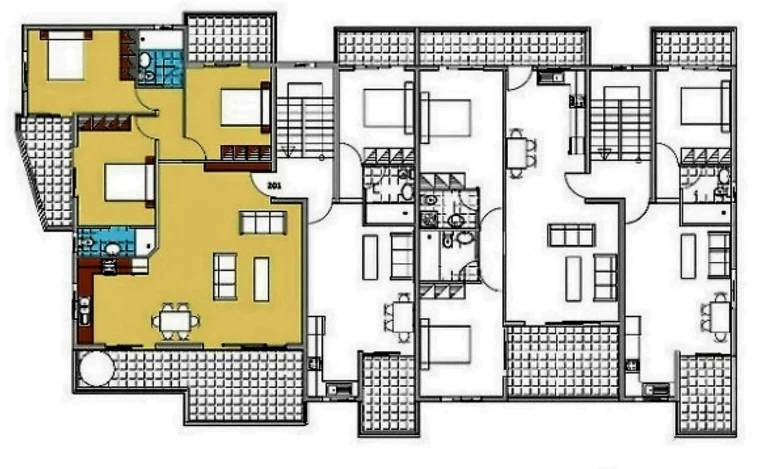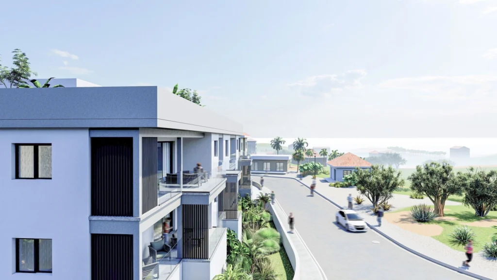 This modern complex comprises eight apartments, each with its own parking lot, ensuring convenience for residents. The house provides a comfortable, cozy, and stylish living space perfect for family leisure. Adjacent to the property is a delightful playground where children can enjoy their time.