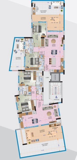 The project showcases spacious 2-bedroom apartments within a six-story building, designed to provide optimal comfort and style. The top floor is exclusively dedicated to a magnificent 3-bedroom apartment with 4 bathrooms. This exceptional residence features expansive covered and uncovered balconies, allowing residents to relish in breathtaking views, and a private roof garden, offering a serene oasis for relaxation and entertainment. Conveniently, each apartment includes a parking bay and storage room on the ground floor, ensuring practicality and ease of living.