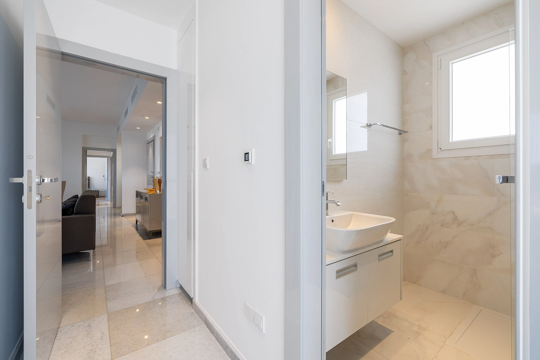 The modern penthouse is part of a well-designed project comprising four floors and housing six apartments ranging from two to three bedrooms. As you step inside, you’ll be greeted by a spacious open-plan layout, seamlessly connecting the kitchen, dining, and living areas, all with luxury finishes. The kitchen boasts modern fixtures and ample storage space.