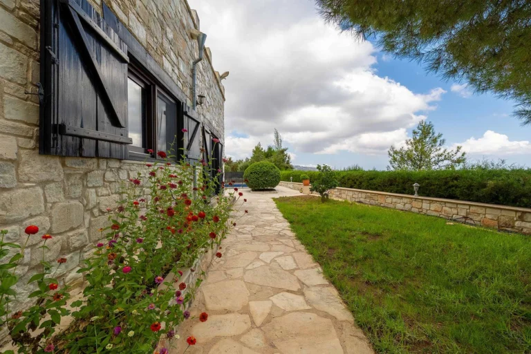 Presenting a distinctive bungalow set on a generous 16,700 square meter plot, surrounded by landscaped gardens. This property, featuring traditional limestone design, creates a harmonious blend of natural aesthetics and refined living. Located in an idyllic spot in Akourdalia village in Pafos region, it offers serene mountain views from every room, making it a rare find.