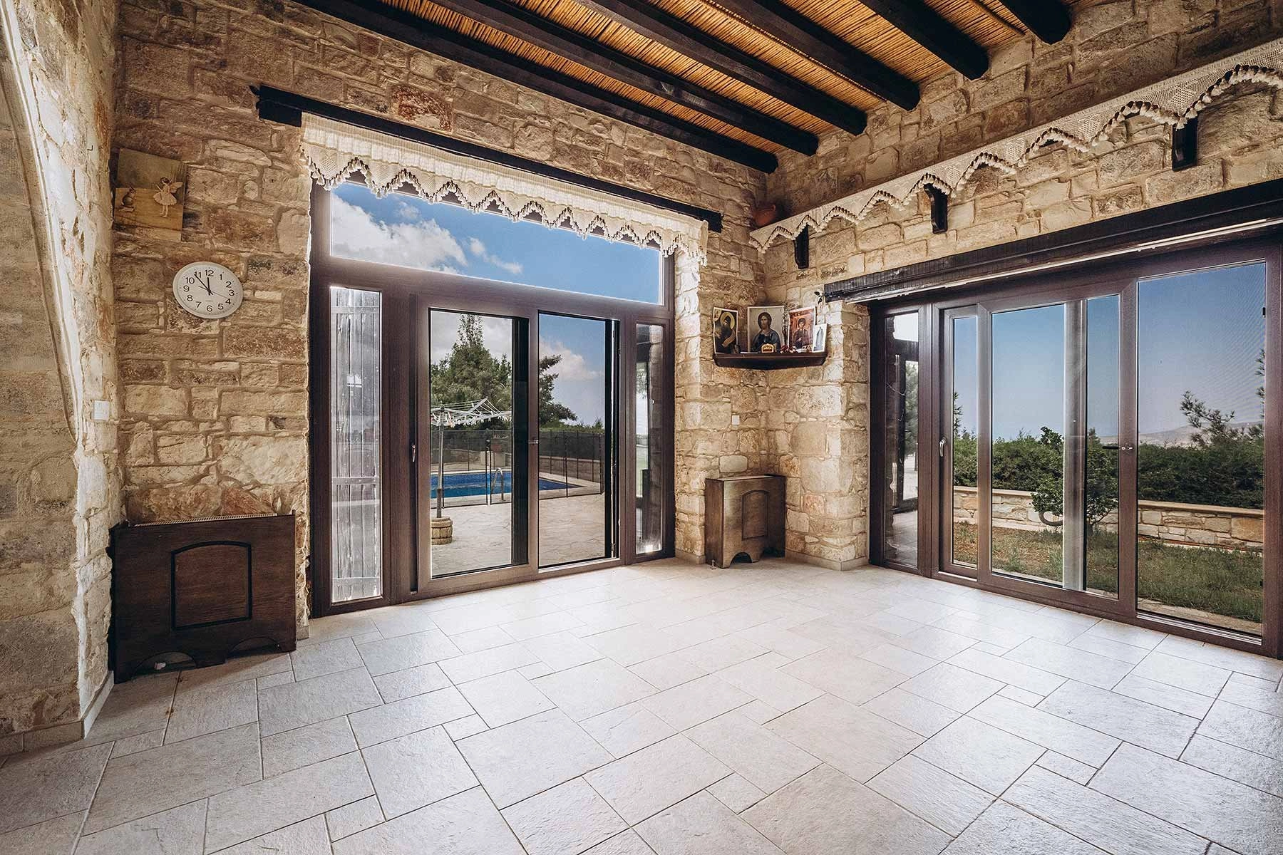 Designed as a single-level dwelling, this unique property has a total covered area of 330 sq.m. Stone clad walls, high wooden beamed ceilings, solid wood window shutters, stone fireplace, rustic furniture, and wardrobes, coupled with village style interior décor, produce an amazingly tranquil atmosphere.