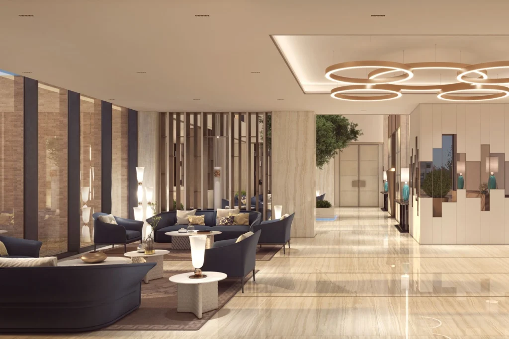 The lobby’s classic and sophisticated design creates a welcoming and sociable space for residents and visitors, while a dedicated co-working zone promotes networking and interaction.