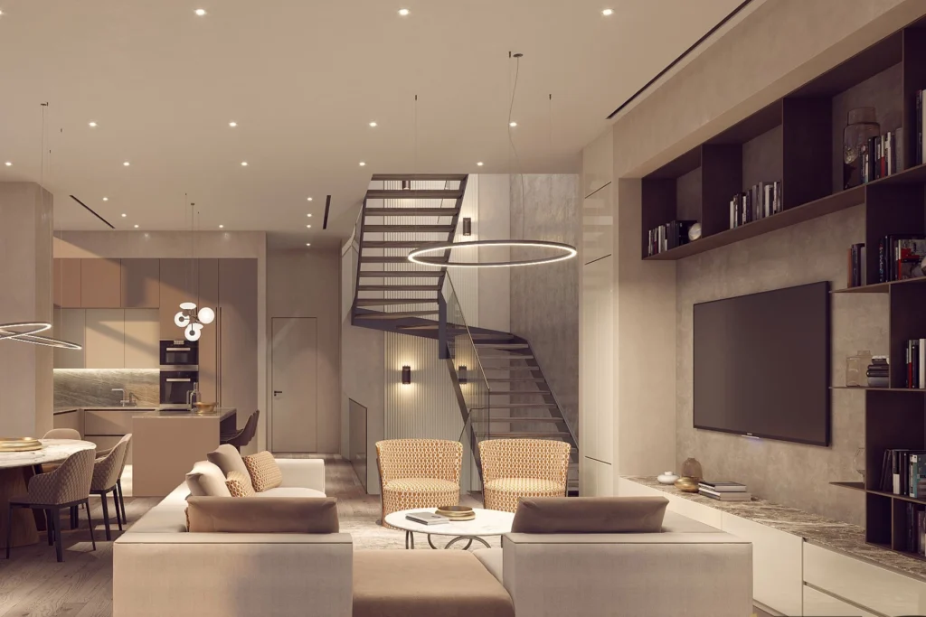 The project also boasts a SPA area with a sauna, hammam, massage, nail bar, and hair salon, as well as a fully equipped gym and a multi-functional sports area including a tennis court, table tennis area, and a kids’ play area.